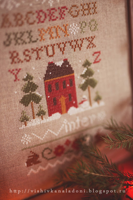 Неминуемо приближается заветный праздник и я изо всех сил спешу вышить подарки и украшения. Эту зиму я вышила давно,но она лежала мятенькая, в ожидании рамы. Рамы я сделала сразу 4, поэтому ждать пришлось долго, теперь вот рамы ждут оставшиеся весну и лето. Итак Little House Needleworks "Winter Band Sampler" DMC 28 ct, мулине DMC по ключу.